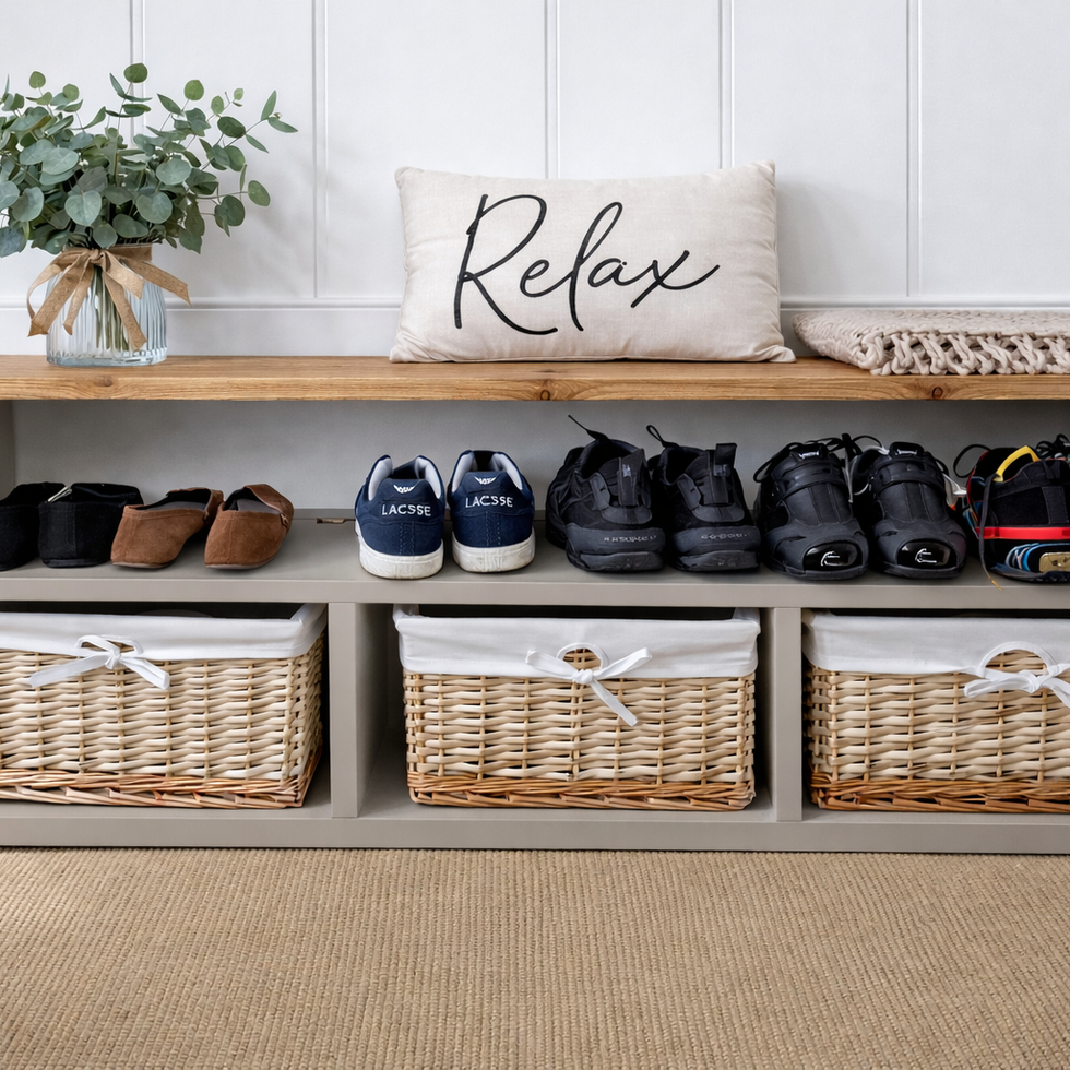 Our Handmade Solid Wooden Storage Bench with Wicker Baskets is designed to bring warmth, order and timeless style into your home. Whether used as a TV unit, hallway shoe rack, living room cabinet or bedroom organiser, this piece blends practical storage with handcrafted quality.