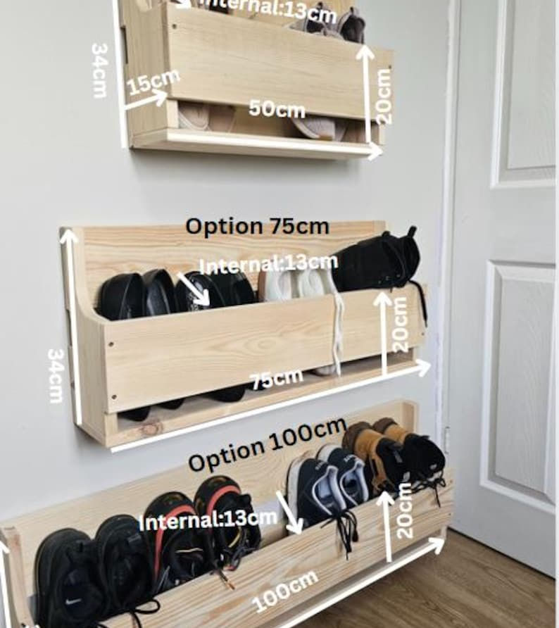 Whether you choose a single unit or design a full wall using various sizes, this shoe rack offers both practical storage and a beautiful, rustic visual.